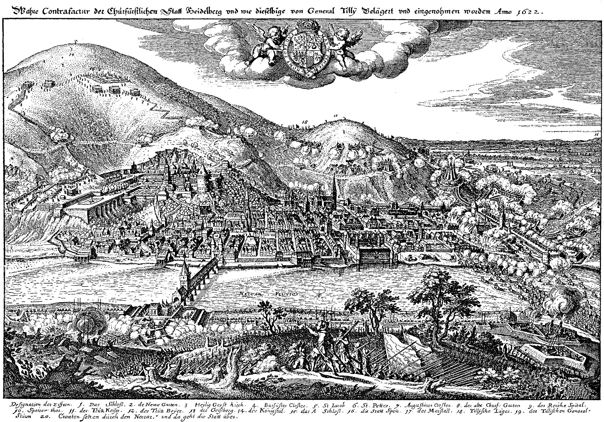 Bohemia has been lost at the battle of White Mountain, and the focus of the war has shifted to the Palatinate. By mid-June of 1622, the Spanish and Imperial forces of Count Tilly and Cordoba had joined, forcing the Protestants to abandon the Eastern bank of the Rhine. Frederick V has been forced out of Mannheim, and what is left of the field army is soon to march north, to attempt to relieve the siege of Bergen-op-Zoom. Only a few Protestant cities are left in the Palatinate - among these is Heidelberg. Defended by the Englishman Sir Gerard Herbert, it is soon besieged by the Spanish and Imperial forces.