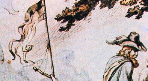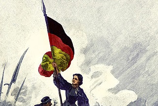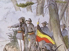 A black-red-yellow tricolor in pennant shape - in this case that of Willich's volunteers - is often seen in depictions of the revolutionaries in the Rhenish Palatinate